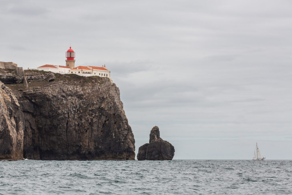 in drei langen Schlägen mit dem schwedischen Buddyboat SY Magda fast immer entlang der 20m Tiefenlinie zum Cap von Sao Vicente und dann an die Algarve nach Sagres.